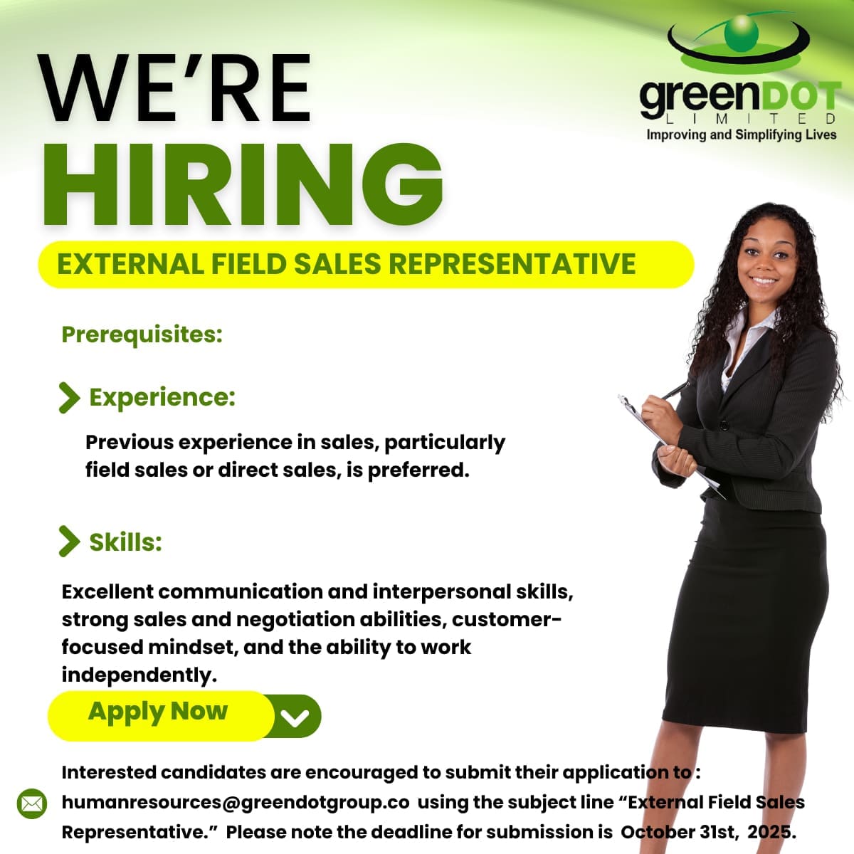 Green Dot Limited is seeking a suitably qualified External Field Sales Representative.